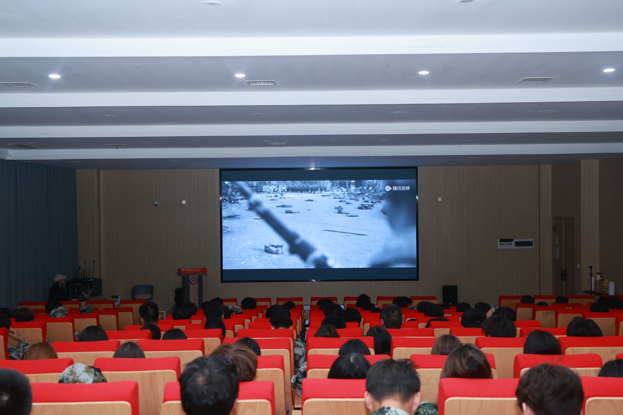 9月18日下午,学校在东、西报告厅郑重举行主题教育活动。全体师生集中观看以南京大屠杀为历史背景的影片《南京!南京!》。这部影片凭借黑白影像的真实质感和扣人心弦的叙事手法,深刻地揭露了侵略战争的残酷本质,淋漓尽致地展现出中华民族遭受的沉重苦难以及顽强不屈的抗争精神。观影过程中,全体学生神情凝重、专注而肃穆,深切缅怀那段民族苦难历史,在静默中凝聚升华爱国主义情怀。
