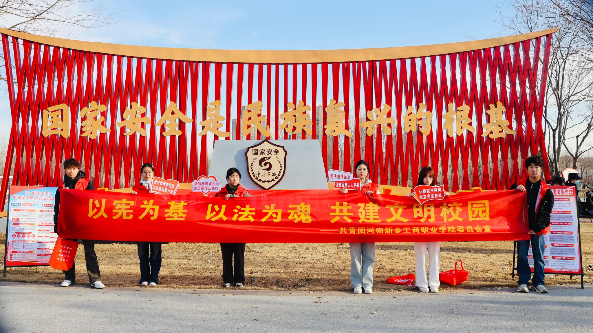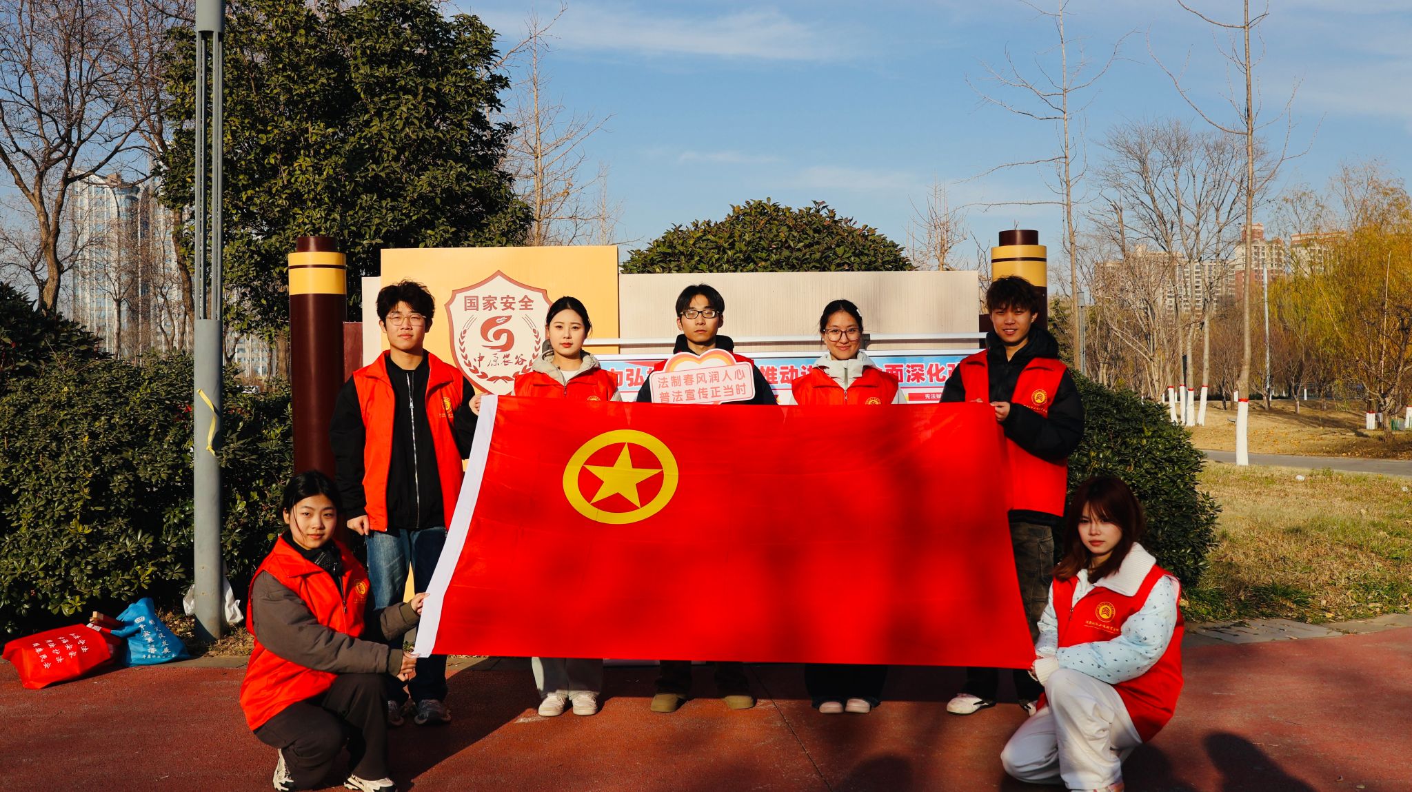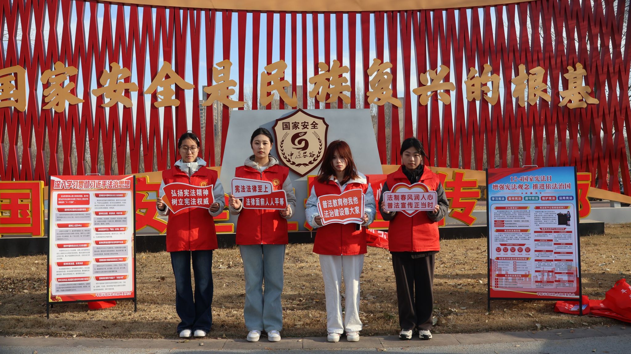 为深入弘扬宪法精神,推动宪法理念与国家安全意识深度融合,切实提升基层群众的法治素养和国安防护意识,12月4日,我校青年志愿者赴平原示范区国家安全主题公园,开展“以宪为盾·守护家国”主题宪法宣传志愿服务活动,推动宪法精神与国家安全意识扎根基层。