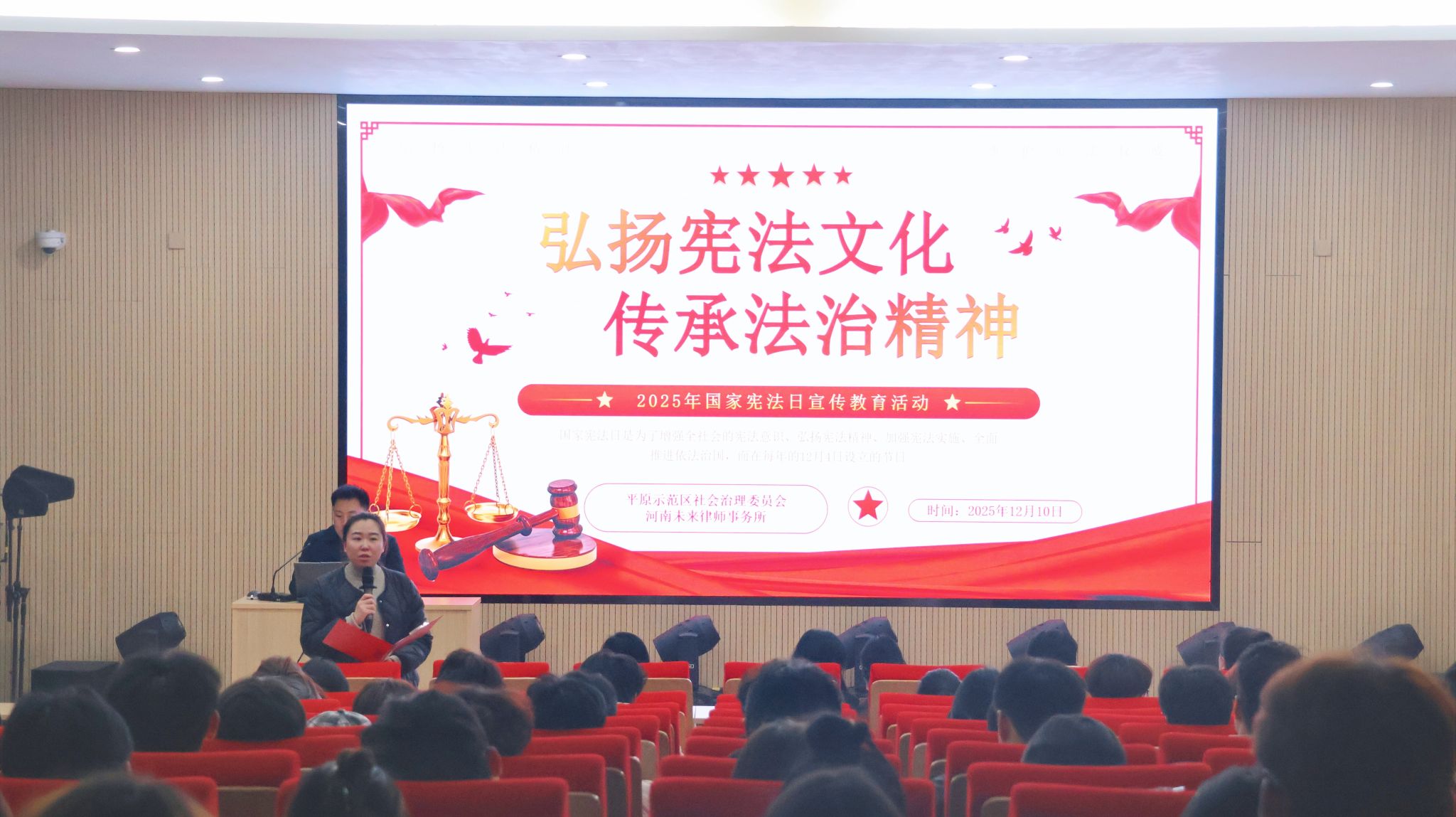 为深化宪法宣传教育,弘扬宪法精神,增强师生法治意识,12月10日下午,我校于7A104学术报告厅举办“宪法宣讲进校园”主题活动,特邀平原示范区公共法律服务中心资深律师邢路担任主讲嘉宾,全校师生代表二百余人参加。