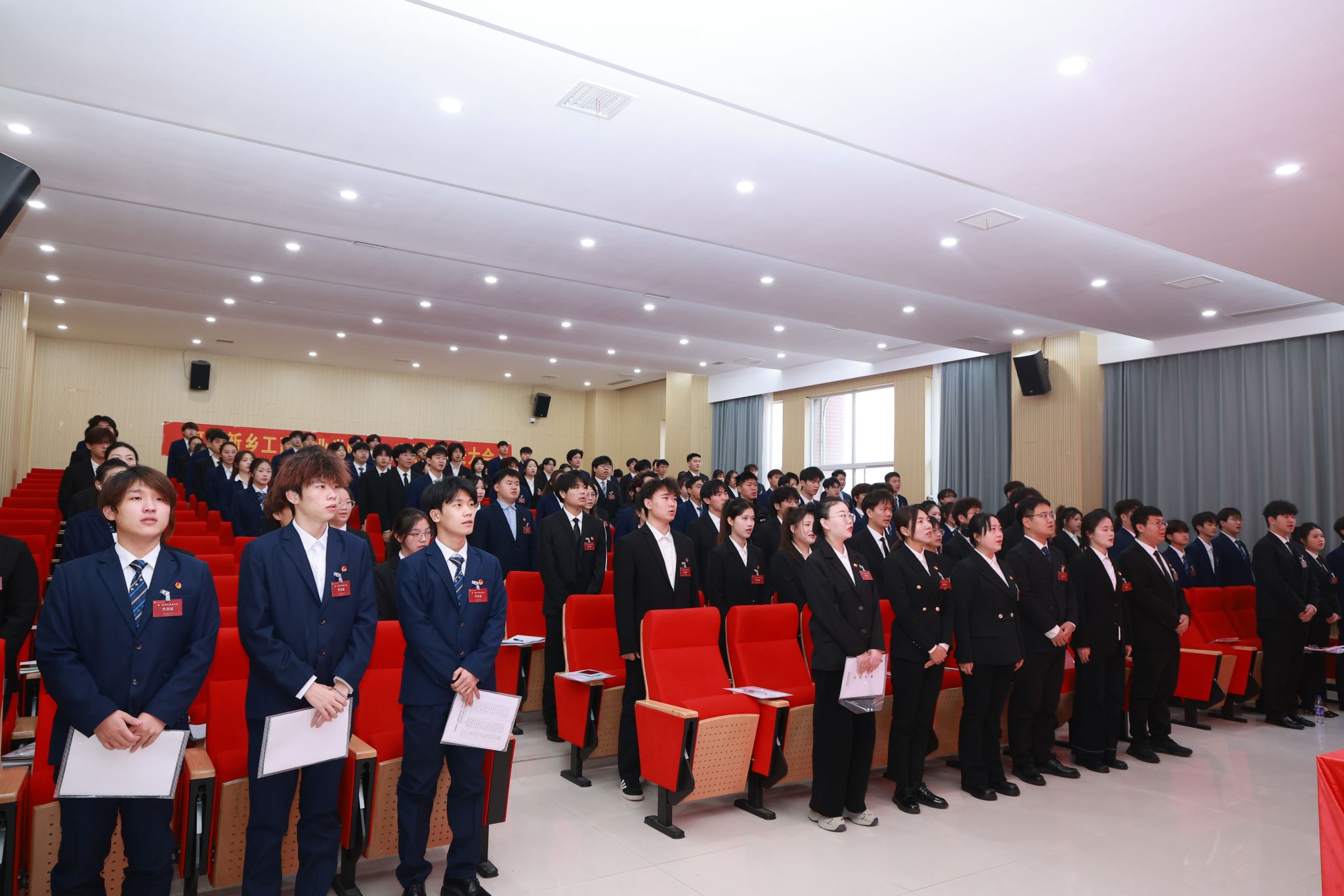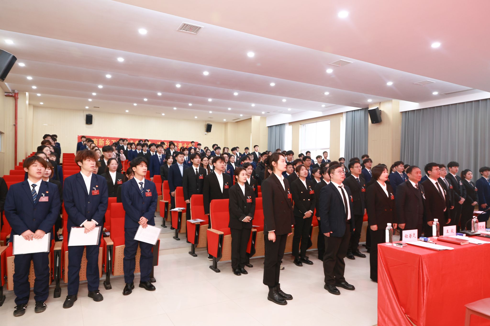 12月26日,河南新乡工商职业学院第一次学生代表大会在学校7A104学术报告厅隆重召开并圆满闭幕。本次大会在学校党委坚强领导和上级学联组织悉心指导下举行,是我校青年学生政治生活中的一件大事,也是广大同学参与校园民主管理、共谋事业发展的重要实践,标志着我校学生组织建设和学生自治工作迈入规范化、制度化发展新阶段。