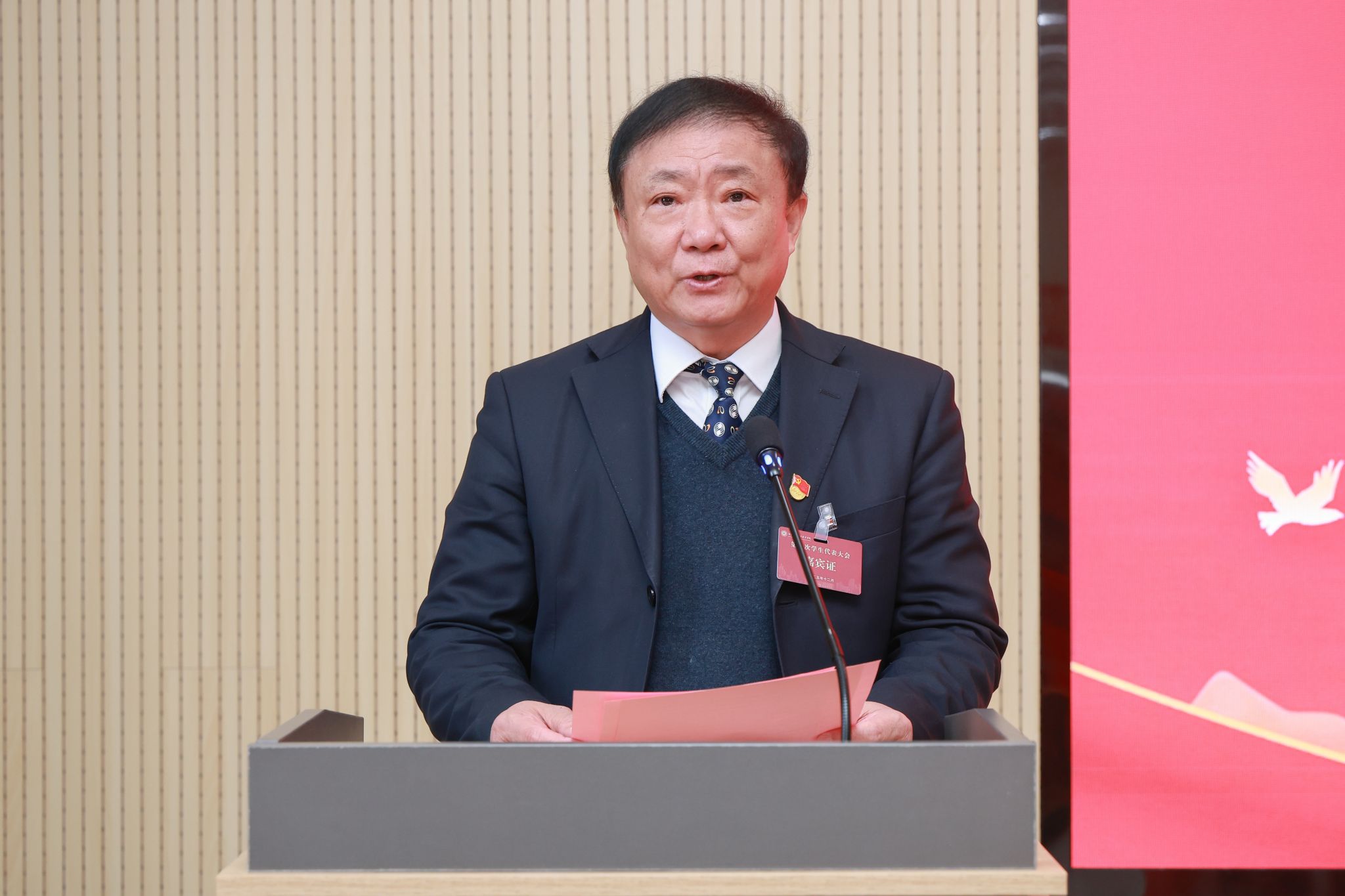 执行校长吴勇军代表学校致辞,对大会的召开表示热烈祝贺。他充分肯定了学生组织在服务同学成长、助力学校发展中所发挥的积极作用,并对全体代表及全校青年学生提出殷切希望:要筑牢信仰之基,胸怀“国之大者”,勇担时代赋予的历史使命,将个人理想融入国家发展和学校建设大局,争做有理想、敢担当、能吃苦、肯奋斗的新时代好青年。