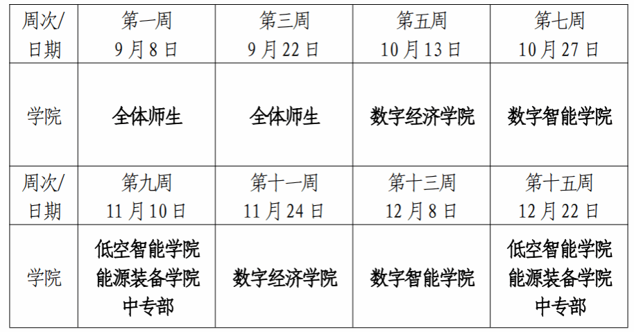 1.各学院需组织学生提前10分钟集合,并维持好秩序;
